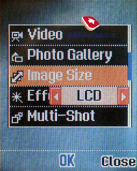 Multimedia. Camera. The handset is equipped with a VGA camera with a CMOS matrix, both internal and external displays can serve a viewfinder. It supports three resolutions - VGA (640x480), QVGA (320x240), and LCD (128x160). Taking a series of 4 to 9 pictures in a certain period is possible. One of the 8 available effects can be applied to the photo. Besides, there are 10 preset frames, also applicable to you photos. You can save photos in a default folder or create your own one.