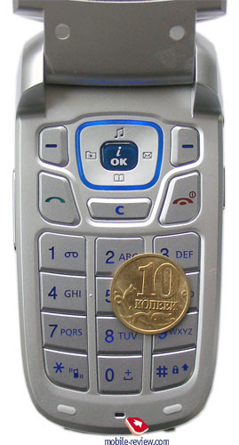 The keypad seemed comfortable. The navi block features well-distanced buttons with a 4D navi button with a centered in it OK one. The number keys are placed in three vertical rows joining closely each other in each row. Working with the number keypad is comfortable due to the large button size, accidental pressures are impossible. The screen backlighting is blue and spread evenly along the whole surface, so that characters are easy to read.