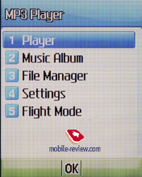 Мультимедиа. MP3-плеер позволяет проигрывать композиции с различными битрейтами, файлы могут находиться в любом месте, как на карте памяти, так и в памяти аппарата. Плей-листы позволяют группировать композиции по усмотрению пользователя. Есть предустановленные эквалайзеры для различных типов музыки, правда, они мало помогают. Полноценная работа плеера в фоновом режиме не предусмотрена, но во время работы с ним есть возможность переходить в раздел «Сообщения». Плеер работает со следующими форматами файлов: MP3, AAC, AAC+, AMR (для диктофона). В начале работы плеера предлагается выбрать, будет ли музыка воспроизводиться через телефон (проводную гарнитуру) или же через Bluetooth-гарнитуру.