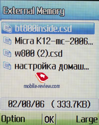 Bluetooth. В аппарате установлен Bluetooth версии 1.2, и поддерживаются следующие профили: GAP, SDAP, Serial-Device A, Serial-Device B, OBEX, Headset-AG, Dun-GW, OPP-Client, OPP-Server, FT-Server, FT-Client, Handsfree-AG, BIP-Image Push, A2DP, VDP, AVRCP. Работа Bluetooth не вызывает нареканий. В настройках можно указать тип памяти, куда по умолчанию будут сохраняться полученные через Bluetooth файлы.
