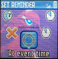 The phone has FM Radio, 20 stations can be stored. Differences from Philips 630 are minimal. The radio is good on the whole, though sometimes you may experience problem with the signal's quality. Organiser. As the title so cunningly may reveal - this menu item stands for the Organiser. You can see a Calendar (for a week or a month). While looking at the month mode in the Calendar some events arranged are marked out. And when you are looking in week mode you can see special icon near every day that has an event planned. There are three types of events: meeting, relaxation and business. For every record a date of beginning and end can be set. They can also be set at several intervals (a day, a week, a month and a year), you can also set a reminder-time to start warning you about the event. There is also a function that allows you to delete all old events at once, which I find very useful. On the whole - the Organiser works fine, nothing special though. The memory of Phonebook and Organiser are combined and shared dynamically. A little surprise: you can record 300 Phonebook entries only if there are no entries stored in the Organiser. ![]()