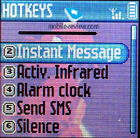 Two soft-keys are located on the left cover, they are used for Volume Control. IrDA port is located on the right. You can connect hands-free device to the bottom of handset, where special port is located together with charger port. This group of ports is covered by a rubber cup. The rubber cup is connected to handset's case, this means that you safe from accidently losing it. Apart from other models non-standart interface port is used. That's why you can use this phone as GPRS modem only via IrDA. Perhaps there will be special cables, but in order to connect it you will have to remove back cover and set special nozzle (like in Alcatel phones). Front and back covers can be changed. Main block is made similar to Motorola's C-series mobiles.