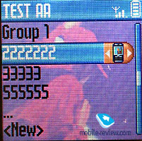 Almost all sub-menus are represented as icons formed in a circle. If you use functions that are hidden down deep in the menu structure, you will have to work that joystick a lot OR start them with voice activation. Yep, the phone's memory can store up to 40 voice commands which can be used for accessing features that are used the most. Navigating the menu will become a lot easier and faster - you'll just have to get used to the Voice Command feature. Phonebook. Up to 300 names in the phone's memory. Several additional informational fields can be added to every entry (up to five numbers, e-mail and address). To access Phonebook from stand-by mode - just press the joystick down. Only one Phonebook can be displayed at a time (either phone's memory or SIM). While overlooking the entries only names and surnames will be displayed. If the entry is too long it will be scrolled automatically. While an entry is marked a telephone-like icon will be shown on the right. This means that you can see other phone numbers attached to this entry. The number that was entered into the Phonebook first will be shown as default for every entry. In order to dial the selected number - just press Call button, but if you wish to edit the entry - you will be forced to list half of the mini-menu. The same operation is required for adding Voice Commands for Phonebook entries. Voice Commands work nicely and the handset handled the commands surprisingly nice. A dissapointing factor would be that you can bind the same voice command for different entries. In this case the phone will always use the most recently added command for the entry. The other one will be stored in the phone's memory, but will never be used. ![]()