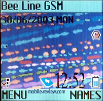 The resolution of the screen is 128x128 pixels (28x28 mm), what allows to display up to 5 text lines and 3 service lines. Color rendering and picture are not bad, as for me they are better than on the similar displays from Nokia (in case of the same number of colors and resolution).