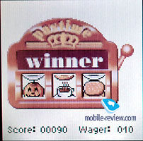 Games. There are three games in the phone: Reflexes, Smartmove, LuckyStar. The first game is a classical Tetris, the mission in the second one is to move balls to their palces, the third one is a slot-machine simulator. ![]()