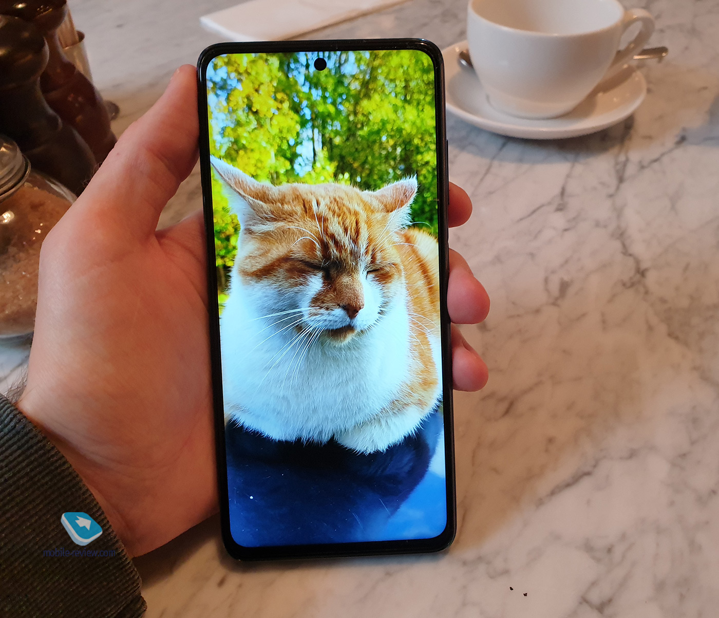 Внешний видЛицевая панель: экран 6.67 дюйма, Corning Gorilla Glass 5, вырез под камеру, динамик, наклеена заводская защитная пленка. Тыльная сторона: поликарбонат, 4 фотомодуля, LED-вспышка. Правая сторона: качелька громкости, сканер отпечатка пальца, совмещенный с кнопкой питания Левая сторона: слот под SIM-карты. Верхний торец: датчик ИК-порта, микрофон, динамик. Нижний торец: разъём 3.5 мм, USB Type-C разъём, микрофон, динамик.
