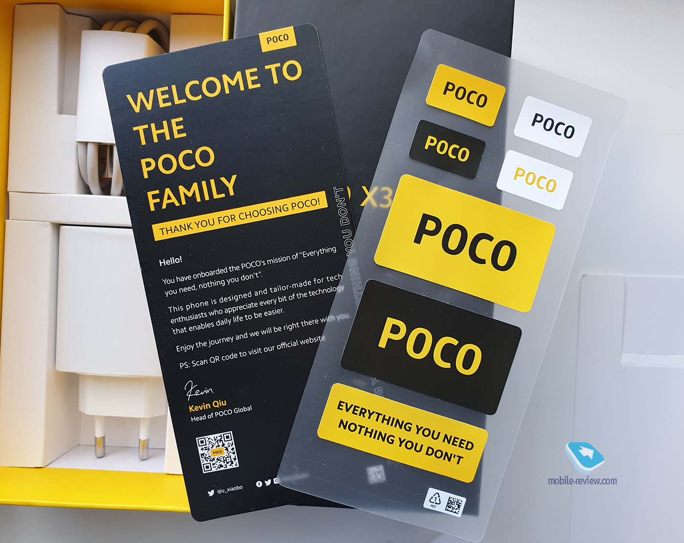 КомплектацияВ комплекте, помимо смартфона, чехла, зарядки и документов, есть наклеечки и карточка «Добро пожаловать в семью».