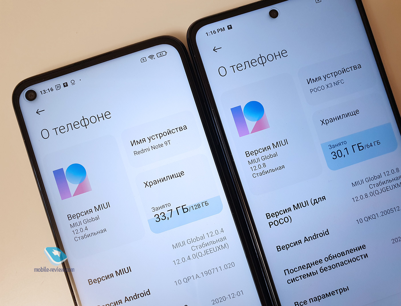 В смартфонах установлены разные конфигурации памяти, но у Redmi Note 9T только 4 ГБ оперативной памяти и 64/128 ГБ накопитель. А Poco X3 NFC идёт с 6 ГБ оперативной памяти и также 64/128 ГБ накопителя. Однако в Redmi установлена более скоростная и оперативная, и постоянная память. Слева – Redmi Note 9T, справа – Poco X3 NFC.