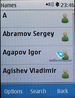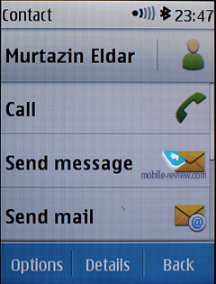 MS Outlook synch module of the sixth edition is far more tuned than that found on the earlier systems. Most of the fields synchronize correctly – and this goes for First Name and Last Name fields as well. From the phonebook menu you are at liberty to send any entry as a Business Card to another device with the aid of an SMS, MMS or a wireless protocol. Unlike the previous edition, here you can choose between sending away the entire entry or name and main number only. In the menu you get OVI Sync option. Now your contacts can be synchronized with OVI service. If you like it can happen automatically once a week.