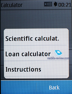 Also the organizer contains a countdown timer, a stopwatch which allows getting intermediate values. Both apps can work in the background mode. The calculator, apart from its default mode, also has a scientific mode as well, and the mode for calculating your interest in your investment activities.