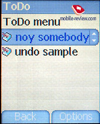 The latch that fixes the back cover is located on the phone’s bottom. Having shifted the latch, it is necessary to pull the panel towards and it is necessary to put some effort as well, otherwise the panel won't be taken off. MenuThe main menu can be accessed by pressing the navigational key into any direction. The side on which you had pressed the navigational key will also decide what menu item will get highlighted. This feature slightly increases the navigation. The main menu supports shortcut number navigation; but it’s disabled in the sub-menus. I almost forgot to mention that the main menu is presented with three rows of icons; three of them are placed in each row. This organization is a common solution for most modern phones. When you’re browsing through the icons, they don’t get highlighted, but covered by red edging instead. Moving from left to right allows browsing through all menus, scrolling goes down by 1 line. The submenu is presented as lists; however each item occupies the whole screen. That’s because there is a big title and huge icon for each menu item. The pictures are not animated, they’re static. However the pictures look nice, they vary this phone. On the other hand, you can’t see the full list, and this creates certain difficulties. You are forced to scroll the whole menu in order to find the required item. It’s traditionally possible to assign the soft-keys a list of basic functions, some sort of shortcuts to be precise. This expiates the menu’s congestion, thus it is possible to access the required features quickly. By the way, you can quickly take advantage of the currency converter, just number suffices and reject the navigation key upwards or downwards. The direction shows, from what currency the convert will occur. You just need to setup the exchange rates initially. For the countries, in which the exchange rates are constant such converter will be convenient, if the rate skips like a wild mustang, it is necessary to use it in a standard manner by updating the rate. ![]()