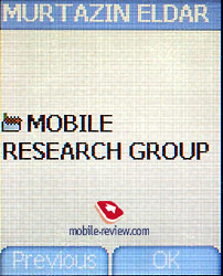 Each entry can feature a big amount of information: Name, Surname, and Notes (this isn’t a common thing for the modern phones). You are free to add three more phone numbers, Company’s name, e-mail, photo and the Group. It’s important to follow the correct input of phone numbers, because if you insert a work or home phone in the cellular phone’s slot – you will be unable to send SMS. When you’re viewing an entry – the first number you have entered will be displayed, it will become the default one. You can see the rest of entries by pressing the “Call” button. On the whole the phone book is rather unusual, but it’s not hard to get used to it and feel comfortably.