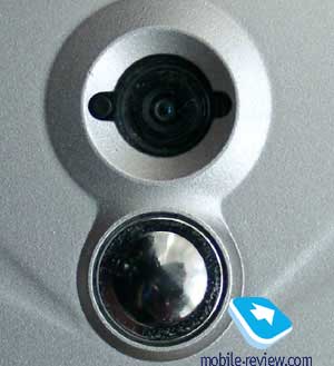 When the backlight is switched on, the screen comes to life. Developers have provided two operating modes for backlight, the first one is when both the keyboard and the screen are highlighted, and the second one is when only the screen is. It’s clear that we need backlight for the screen only most of the time, so the second mode should save some battery power Such screen options, as brightness and contrast level are not stipulated in this model. You can only choose one of the several preinstalled images for wallpaper or screensaver and adjust menu's color theme. There are some really nice preinstalled pictures located on the phone’s memory, so you don’t even need to transfer them from your PC, in case you don’t have one. IrDA is located on the right side of the case, no volume control buttons or any soft-keys were found. Interface connector is located on the phone’s bottom. The phone’s back cover features the first surprise. It has camera covered with shutter and small mirror located on it.