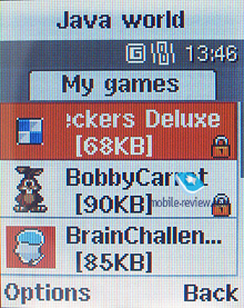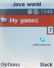 ![]() Java World В этом пункте хранятся игры телефона, и отсюда же вы будете запускать установленные приложения. Производительность Java-машины телефона довольно низка. Для двухмерных игрушек ее вполне хватит, а вот с тремя измерениями телефон не справляется.