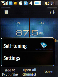 ПриложенияFM-радио. В памяти аппарата можно сохранить до 99 радиостанций, диапазон доступных частот – от 87.5 МГц до 108 МГц. Есть автоматическая настройка всех станций, но для отдельных каналов нельзя назначить свое имя, они всегда отображаются в виде частоты, цифр. Радио работает и в режиме громкой связи. Реализация радио нормальна, не все радиостанции аппарат принимает хорошо, но в целом все на нормальном уровне, сравнимо с телефонами других производителей. Радио работает в фоновом режиме. Функция RDS показывает только заголовок радиостанции в общем списке вверху, других назначений у данной опции нет.