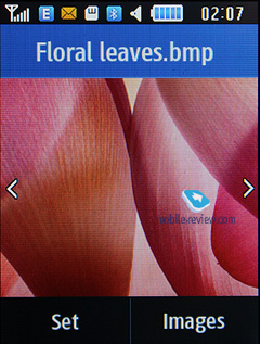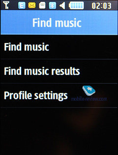 МР3-плеерТипичный плеер от компании Samsung. Он поддерживает случайное, последовательное и циклическое воспроизведение треков. Загрузить mp3-файлы в телефон можно как напрямую через Bluetooth, так и из программы синхронизации или Windows Media Player. Файлы могут иметь любые имена и теги, в том числе, и на русском языке, телефон хорошо их понимает. Битрейт файлов также не играет большой роли, аппарат прекрасно понимает все доступные форматы. Также поддерживаются файлы WMA, AAC, eAAC, eAAC+. Во время проигрывания показывается номер текущей песни, общее число композиций. Громкость имеет 14 градаций. Пользователь может создавать свои плей-листы. Плеер работает и в фоновом режиме. В этом случае на экране отображается название композиции и подсказка к управляющим элементам, что приятно. В режиме громкой связи динамик играет не очень чисто - не хватает мощности, но звук при этом средней громкости, он не слишком тихий. Есть функция поиска музыки по отрывку композиции.