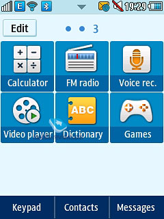 В главное меню можно попасть, нажав на центральную клавишу, оно представлено матрицей 3х4, есть несколько экранов. В главное меню можно вынести как ярлыки приложений, так и ярлыки на интернет-странички.