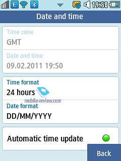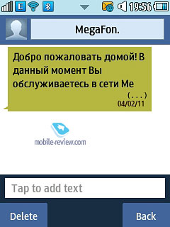 Существует ограничение на размер MMS-сообщения в 295 КБ, а размер принимаемого сообщения не ограничен. Из дополнительных настроек надо отметить возможность отклонения рекламных сообщений, выбор типа приема сообщения в роуминге и в домашней сети. Сообщения сохраняются в общей динамической памяти, то же и для электронной почты. Есть также полезная функция отправки SOS-сообщений. Если ее активировать, то в экстремальной ситуации после четырехкратного нажатия на клавишу изменения громкости сообщение «I am in emergency. Please help me» будет отправлено указанным ранее контактам, и входящие звонки с этих номеров, полученные после отправки сообщения, будут приниматься автоматически. Номера абонентов (не более 5) и количество повторений сообщения можно указать самостоятельно, однако текст не редактируется. Встроенный почтовый клиент обычен, никаких особенностей у него нет. Всего можно настроить до 5 аккаунтов, ограничение на число сообщений для каждого равно 1000. Поддерживаются вложения, но ограничение на размер сообщения при отправке 1 МБ, для принимаемого сообщения ограничение равно 5 МБ. Получаемые файлы можно просматривать на устройстве с помощью встроенного браузера. Поддерживается HTML, странички показываются нормально. Есть мастер установки, который помогает настроить почту.