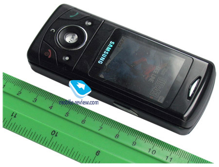 На лицевой панели мы видим дисплей, чуть выше него – динамик, одновременно выполняющий роль разговорного и вызывного. Под дисплеем находится выступ, играющий роль опоры для пальца при открытии слайдера. В нижней части расположен блок навигационных клавиш. Верхний и нижний торцы свободны от каких-либо элементов, кроме микрофона на нижнем торце. При раскрытии аппарата на задней стороне половинки с дисплеем обнаруживается глазок камеры, зеркальце для автопортретов и миниатюрная вспышка. В закрытом состоянии эти элементы скрыты.