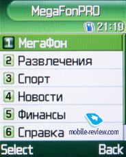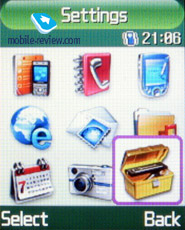 МенюСтруктура меню идентична остальным аппаратам компании. Благодаря использованию в каждой новой модели одинаковой платформы задача описания меню для обозревателя, а также его изучения для читателя упрощена до минимума. Если вы в общих чертах представляете себе меню аппаратов корейского производителя, можете смело пропускать его описание. Тем же читателям, которые не знакомились с аппаратами Samsung, возможно, следующие несколько абзацев будут интересны. Представлено главное меню классической матрицей значков (3x3), каждое подменю имеет строчную структуру (список). Есть возможность навигации с помощью цифровых клавиш, для этого напротив некоторых пунктов есть цифра с указанием клавиши активации. Значки приятные, хотя и несколько детские, слишком яркие. За использование разных иконок в своих моделях можно отдельно похвалить Samsung, большинство других производителей, выбрав определенный набор значков, штампуют его на все модели.
