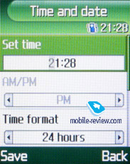 Настройки. В настройках изменяется время и дата, язык, приветственное сообщение, яркость дисплея и другие параметры. Все они известны по предыдущим моделям от Samsung, здесь нет ничего нового.