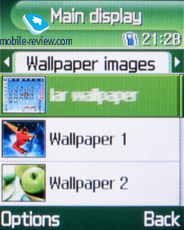 Диспетчер файлов. Это файловый менеджер памяти телефона. В аппарате 82 Мб памяти, возможности ее расширения нет. Здесь просматриваются загруженные изображения, видео, звуки и дополнительные файлы (other files). Копировать файлы можно только внутри папок. Просматривать предустановленные картинки и мелодии через файловый менеджер невозможно. Доступен просмотр свободной и общей памяти. Аппарат поддерживает MMF- и MP3-файлы. Размер передаваемых в аппарат MP3-файлов не ограничен. Все скопированные мелодии можно устанавливать в качестве вызывного сигнала, как общего, так и для отдельного абонента. На SMS-сообщения установить эти мелодии нельзя, здесь Samsung в очередной раз решил ограничить пользователя десятью стандартными сигналами.