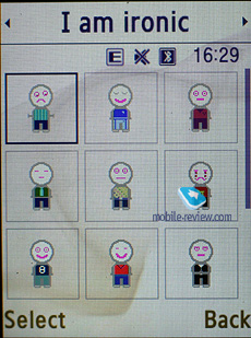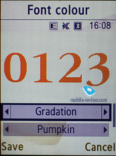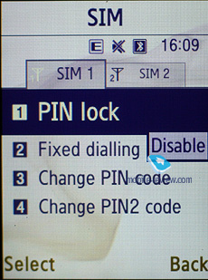 ![]() File Manager (My files). Собственно, здесь собраны все файлы: музыка, картинки, видео, звуки. Все загружаемые файлы попадают сюда. Из недостатков стоит отметить, что иногда файл отображается в общем списке не сразу, требуется выйти и снова открыть список. Поддерживается отображение файлов как в виде списка, так и в виде иконок. Можно выбирать как один, так и несколько файлов из списка. Поддерживаются такие файловые операции, как копирование, удаление, перенос файлов. Сортировка файлов может происходить как по времени, так и по типу, имени, размеру. Настройки. Первое предложение это SIM-менеджер, он описан выше. Традиционно можно защитить паролем любой раздел телефона (сообщения, короткие сообщения, органайзер и т. д.). Указывается время подсветки экрана, его яркость. Для режима набора номера можно выбрать, как будут выглядеть цифры, их размер, а также цвет.
