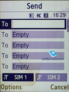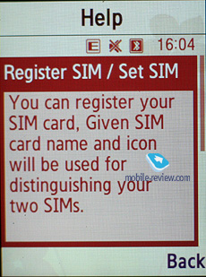 Традиционно есть три степени сжатия снимка (файла JPEG). Ночной режим регулировка баланса белого, отключение звука затвора. Можно установить таймер на 3, 5 и 10 секунд. Эффекты представлены такими, как Black&White, Negative, Emboss, Sketch, Moonlight, Fog, Antique. Можно снимать сериями снимков по 6 или 15 с различной скоростью, промежутком между снимками. Есть режим мозаичных снимков, наконец, присутствуют рамки для фотографий и режим панорамы. Видео. Запись видео возможна в разрешении 352x288, 320х240, 176х144 и 128х96 точек, при этом может стоять ограничение по размеру для MMS-сообщения, или запись будет происходить без такового. Качество видео среднее, не на уровне современных аппаратов, где не редкость уже VGA-разрешение. К видео применяются те же эффекты, что и для фотографий, те же настройки качества. Пример видео (mp4, 1,58 мб) >>> Работа с двумя SIM-картамиПод аккумулятором находятся два слота для карт памяти, вы можете установить карты как вам угодно, из меню телефона есть возможность назначить основную карту, которая используется по умолчанию. Это важное отличие от других аппаратов с двумя картами, в них многое зависит от слота, куда вы физически поставили карту. Правда и тут на слотах указано, какая карта первая, какая вторая. Это влияет только на то, в каком порядке их вам предложит SIM-менеджер и только. Как работает аппарат? Вы включаете телефон и с помощью SIM-менеджера можете назвать любым именем те карты памяти, что установили в аппарат. Соответственно, при работе с картами пропадает путаница, это удобнее, нежели просто имена SIM1, SIM2, как в других аппаратах. Ограничение на имя в 5 символов снято в этой версии аппарата.