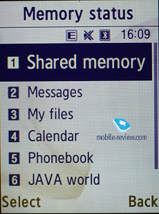 Объем памяти, выделенной для Java-приложений, ограничен 4 Мб. Удалить можно любые игры из установленных. Загрузка новых игр поддерживается только по воздуху (через wap). Размер heap не может превышать 2 Мб, размер приложения – 1 Мб. WAPВ телефоне установлен wap-браузер версии 2.0 (Open Wave), он явно проигрывает NetFront 3.4, который является стандартом для продуктов последнего поколения от Samsung. Отсутствует «умное» форматирование страниц, нет поддержки работы со страницами большого объема и так далее. Самый лучший выход выбор Opera Mini в качестве альтернативы.