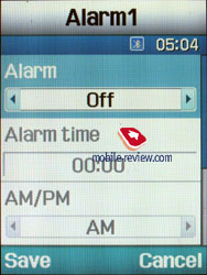 Alarm clock. The phone is equipped with three alarm clocks. One is meant for mornings and can be set for selected weekdays, however, that is typical of the two others also. For each of the alarm clocks there is a selection of five melodies but also mp3 compositions can be used here. It is up to a user to indicate in the settings whether the phone would turn on automatically in the time of the event or not.