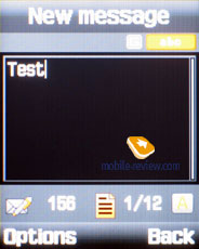 Сам экран качественный и яркий, он обладает разрешением 176х220 точек (33х40 мм), выполнен по TFT-технологии и отображает 65000 цветов. Углы обзора не слишком велики, но вполне достаточны для комфортной работы с телефоном. На ярком солнце дисплей выцветает незначительно, поэтому картинка блекнет, но вся информация остается читаемой. В режиме набора номера (при самом маленьком шрифте) на экране помещается 5 строк и 2 статусные, при просмотре меню отображается 6 элементов списка, название раздела, строка с часами и служебные кнопки, а при написании сообщения, если выбран маленький шрифт, на экране отображается до 7 строк плюс 3 служебные.