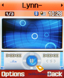 Applications. MP3 player. An integrated mp3 player, supporting random track playback, sequential and cyclic, is available on the phone. Mp3 files can be uploaded to the phone both directly through Bluetooth and through a synchronization application. There are no limitations, placed on tags and names of music files. The user is armed with nearly 80 Mb of storage for filling up with music and other apps and other content.