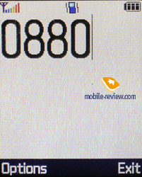 The external screen is also made in the style of the last models, two lines showing time (16x96 pixels), battery charge and signal level are always shown. The rest of the screen has the resolution of 80x96 pixels (14x18 mm), 65K, OLED. The colours on the external screen are quite bright indoors, the picture looks well. The screen fades outdoors, the picture is almost indistinguishable. The impossibility of adjusting the contrast is a minus. At the incoming call the picture of a caller and his name are shown full-screen. The screen wins in the status bar permanently shown and its perfect view in all the weather conditions loosing to TFT screens in the level of picture representation in the sun.