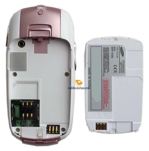 The edging of the internal screen is of a mirror and the screen itself can't turn into a mirror like in the T500. The screen type and its characteristics are typical for the last generation phones by Samsung and differ from the Samsung E620, E720, and E730 in nothing. The screen is 176x220 pixels (28x36 mm, 1.7" in diagonal) with 262K colors. Samsung models have always been at the top in this aspect and this one is not an exception. The colors are bright and vivid and the display is really better than other manufacturers (the only exception is Sharp and Motorola using the same screens). The quality of the screen has no rivals and even Siemens SL65 looses in the picture quality. Comparison with Motorola v620 showed no big difference, the colors and brightness of the picture are approximately the same. The TFT screen behaves not bad in the sun and the picture is seen.