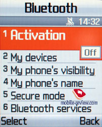 Bluetooth. The handset supports various profiles, namely, Headset, Handsfree, Serial Port, Dial Up Networking, File Transfer, Object Push. The Bluetooth realization is not ideal, troubles with headsets having only a Headset profile appear pretty often, and speakerphone is handled in improper way sometimes either. In general the Bluetooth found on the D900 is comparable to that on Nokia’s phones, but worse than on Sony Ericsson. Support for A2DP profile is missing.