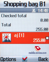 Shopping list. There are 5 shopping bags in sum available for filling up; each of them can contain various goods of certain price. In its turn, the E570 calculates total cost. This feature comes in handy only when you are doing shopping – you just tick off items as you go further on your to-buy list.