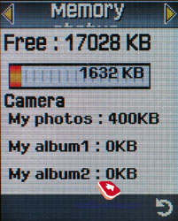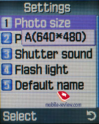 Камера поддерживает следующие разрешения – VGA (640x480), QVGA (320x240), QQVGA(160x120), Mobile (176x120). Поддерживается 4 типа сжатия, качества файлов (Economy, Normal, Fine, Super Fine). Под фотографии отводится до 18 Мб памяти, средний размер снимка в высоком разрешении и средним качеством сжатия порядка 30-40 Кб. Запись видео здесь не поддерживается. Пример фотографии