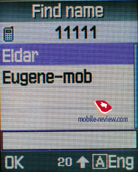 Телефонная книга. Из режима ожидания можно войти в телефонную книжку, нажав правую софт-клавишу. Вы сразу же попадаете на список пунктов, первый из них - “Поиск имени”. Телефон позволяет отображать одновременно как память SIM карты, так и самого телефона. При этом, если вы вносите номера в память аппарата, вы имеете возможность на одно имя записать несколько номеров (мобильный, домашний, рабочий, факс, другой), а также адрес электронной почты, адрес в Интернете, и наконец, установить, к какой группе абонентов принадлежит пользователь. При этом в телефоне всего можно создать до 10 групп, вы вольны дать им имена сами. Для отдельных групп могут быть назначены свои мелодии звонка, картинки, звук для получаемых SMS-сообщений. В памяти телефона может быть сохранено до 1000 номеров. ![]()