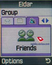 По оформлению интерфейса пункт телефонная книга выбивается из общей концепции телефона, он рудиментарен и остался здесь от моделей Х-серии. Отдельному имени можно соотнести свою картинку, это может быть как предустановленное изображение (к примеру, большой набор веселых человечков), так и фотография сделанная вами. Приятно, что можно назначить абоненту свою мелодию звонка. В целом организация просмотра записей отличается от стандартных моделей Samsung, здесь реализован переход по закладкам в горизонтальной плоскости. Такая же реализация характерна для ряда продуктов от LG. Сообщения. Телефон поддерживает стандарт EMS, а также соединенные сообщения (до 918 символов). Как следствие, присутствует набор небольших картинок (22 штуки), анимация (24 картинки), возможность добавления в тело сообщения мелодии. Память телефона рассчитана на 200 сообщений, помимо памяти SIM-карты. ![]()