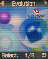 Установки. В меню можно установить приветственное сообщение, но большего внимания заслуживают настройки экрана. Так, в качестве обоев экрана можно установить анимацию (в телефоне 8 предустановленных). Плюс для шрифта в режиме ожидания можно выбрать стиль. Интересно, что подсветка экрана может быть установлена на различное время, выбор отдельных значений очень широк (от 15 секунд до 10 минут). Максимальное значение интересно для тех, кто любит подолгу играть в игры, не придется двигать клавишами, чтобы активировать подсветку. ![]()