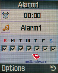 В телефонах большинства производителей в том или ином виде присутствуют алгоритмы улучшения звука, но все они принимают решение без участия пользователя. Тут же пользователь может сам выбрать как в меню, так и во время разговора, когда включить функцию, а когда отключить ее. В этом есть свои преимущества, особенно учитывая, что стандартная оптимизация звука в аппарате присутствует. Нажатию клавиш в режиме ожидания можно назначить обычный звук или выбрать женский/детский голос, который будет проговаривать нажимаемые цифровые клавиши. Органайзер. В телефоне можно ввести новую памятку, что называется сходу. В памятке может содержаться до 40 символов. Отдельных категорий для событий нет, как и их разделения. Вы просто вводите событие для текущего дня и только. Для одного дня можно ввести несколько событий, есть быстрый переход к нужной дате. Календарь может отображать текущий месяц. ![]()