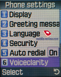 Звуки. В телефоне 64-тональная полифония, она звучит неплохо. Есть несколько режимов работы звонка, в частности только звонок, только вибрация, либо вибрация и затем мелодия. Другие настройки стандартны, это выбор типа предупреждения для SMS, отдельно для MMS, настройка минутного таймера во время разговора, режим работы в бесшумном режиме (есть вибра или полная тишина). ![]()