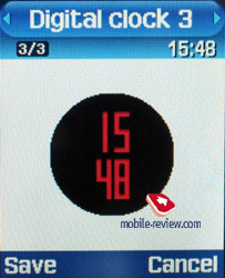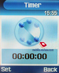 Alarm clock. The phone is equipped with three alarm clocks. One is meant for mornings and can be set for selected weekdays, however, that is typical of the two others also. For each of the alarm clocks there is a selection of five melodies although mp3 compositions cannot be used here. It is up to a user to indicate in the settings whether the phone would turn on automatically in the time of the event or not.
