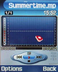 Applications. MP3 player. An integrated mp3 player supporting random track playback, both sequential and cyclic, is available in the phone. Mp3 files can be downloaded into the phone both directly through Bluetooth and through a synchronization program. Files may be of various names and tags (in Russian language as well!). The bit rate of the files is not that important since the phone accepts all the possible formats.