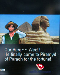 An unordinary capability is sound transmission via Bluetooth to stereo headphones, a corresponding profile is present in the last Samsung's models. The name of the track playing is displayed as well as the overall number of different compositions. An equalizer is of an entertaining nature; there are no separate settings (only select from classic, rock, jazz and normal). The tracks can be played through the stereo headset as well as through the speakerphone. The volume has ten levels. The user is welcome to create play lists of his/her own. Totally about 76 MB of memory are used for MP3 compositions (there are 92 MB of memory in the phone). The player is neither worse nor better than by other manufacturers. Everything is rather plain. Dictaphone. You can record up to several hours of voice memos with the number of files being unlimited. The time restrictions for one recording are set by a user and can vary from 30 seconds to one hour in duration. All the files are kept in a separate folder in the memory. Records of lectures and round-table discussions are quite good, possible to interpret. The phone is a partial substitute for a digital tape recorder. Java World. Up to four MB of memory are available in the phone for various programs. This is a separate memory allotment and is used for Java only. MIDP 2.0 version allows the use of the graphic reach and three-dimensional games. There are three games preinstalled in the phone - Screamer, Pharaoh, Freekick. In the first game you play bobsleigh; all the attributes of this winter sport and a possibility to choose the sledge and a route are available. The second game is not a bad arcade, where you need to find Pharaoh's treasures. The third game is a soccer simulator where the main task is to score a goal into the opponent's gate.