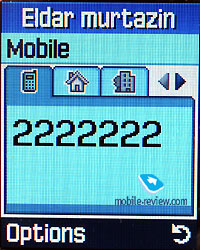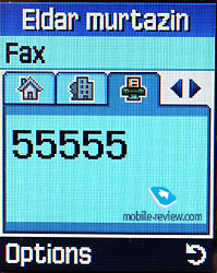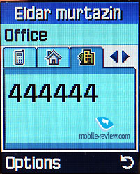 The SIM-Card holder is standard. MenuThe menu’s structure is full copy of other Samsung phones, the only exception is that the interface was significantly reworked, it became more interesting, the icons are livelier. The main menu is indexed, this means that the fast number navigation is supported. The user has the ability to choose one of the three menu’s appearances: slide-mode (big icon and signature), list mode or list of icons placed in three rows. All sub-menus are presented with usual lists. ![]()