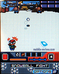 Dictaphone. Five voice memos can be stored, the length limit is 30 seconds for each. The phone allows recording conversation, in order to perform this operation you’ll have to enter the menu and launch Dictaphone from it. It’s not very convenient, however this is the only way to activate it. Fun Box. WAP-browser v2.0 which allows viewing color images is located here. The phone supports GPRS (4+2) which makes the surfing nice and comfortable. Sounds, images and photos are located in the Sounds and Images folder correspondingly. The phone has two games preinstalled: Bubble Smile (my favorite edition of balls), as well as SnowBall – snowball fight game. These games cannot be deleted from the memory. ![]()