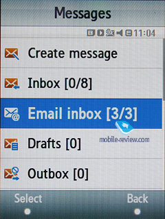 Есть также полезная функция отправки SOS-сообщений. Если ее активировать, то в экстремальной ситуации после четырехкратного нажатия на клавишу изменения громкости сообщение «I am in emergency. Please help me» будет отправлено указанным ранее контактам, и входящие звонки с этих номеров, полученные после отправки сообщения, будут приниматься автоматически. Номера абонентов (не более 5) и количество повторений сообщения можно указать самостоятельно, однако текст не редактируется. Встроенный почтовый клиент обычен, никаких особенностей у него нет. Всего можно настроить до 5 аккаунтов, ограничение на число сообщений для каждого равно 100. Поддерживаются вложения, но ограничение на размер сообщения при отправке – те же 300 Кб, для принимаемого сообщения ограничение равно 500 Кб. Получаемые файлы можно просматривать на устройстве с помощью встроенного браузера. Поддержки html в письмах нет, что вызывает нарушение форматирования большинства получаемых писем, просматривать их не слишком комфортно. Почтовый клиент в телефонах от Samsung начинает сильно проигрывать таковому в аппаратах от Nokia, Sony Ericsson.