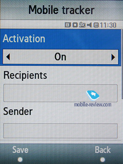 ![]() Традиционно настраивается размер шрифта при наборе номера, его цвет и стиль. Для VibeZ можно настроить силу вибрации. ![]() Mobile Tracker – вы указываете номер телефона, на который будут отсылаться сообщения при смене SIM-карты. В получаемом сообщении вы увидите номер SIM-карты, использованной в вашем аппарате. Войти в данный раздел можно только по паролю, что предотвращает отключение функции информирования без знания пароля. При установке новой SIM-карты сообщение отсылается только один раз, каждая последующая смена карты вызывает новое сообщение. Интересная возможность, которая в какой-то мере повышает шансы обнаружить телефон, если его украли.