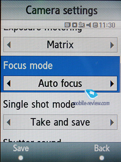 Камера имеет автофокус, отдельных настроек замера по центральной точке или всему снимку нет. Появился режим определения лица (Face Detection), в нем на снимке определяется лицо (портретная съемка), и аппарат автоматически настраивает все параметры под этот тип съемки. На практике разницы между этим режимом и обычными настройками мы не заметили совсем. Баланс белого выставлялся на автомат по умолчанию, но можно в ручном режиме выбрать Daylight, Incandescent, Fluorescent, Cloudy, Sunset. Количество режимов интересно для тех, кто любит копаться в настройках камеры, больше подходит для цифрового аппарата, чем для телефона, где основной принцип иной (достал и сфотографировал). ![]() ![]() ![]() ![]() ![]() ![]() Звук затвора можно отключить, так же, как и звук работы зума. В аппарате 12-кратный зум (цифровой). Яркость изображения может быть отрегулирована от -2 до +2, по умолчанию выставлена на 0. В настройках можно указать, какой будет резкость снимка, учитывая, что это фильтр, трогать его не стоит, качество картинки сильно не изменится, а вот на ПК отредактировать ее будет сложно даже при желании (потеря информации при таком фильтре неизбежна). Камера позволяет при съемке применять к фотографиям ряд эффектов, в частности, Negative, Sepia, Black&White. Учитывая, что встроенный редактор изображений обладает ровно теми же возможностями, «портить» исходную фотографию не стоит. Рамки отличаются разнообразием, но при их применении разрешение автоматически уменьшается до 320х240 точек. В настройках можно указать имя файла по умолчанию, выставить чувствительность матрицы (Авто, ISO 50, ISO 100, ISO 200, ISO 400). Рекомендую применять авторежим, так как он в большинстве случаев работает корректно. К тому же, особой разницы между различной чувствительностью матрицы в обычных условиях нет, вы не определите изменения на финальной фотографии. Таймер для съемки себя любимого в окружении друзей устанавливается на 3, 5 или 10 секунд.